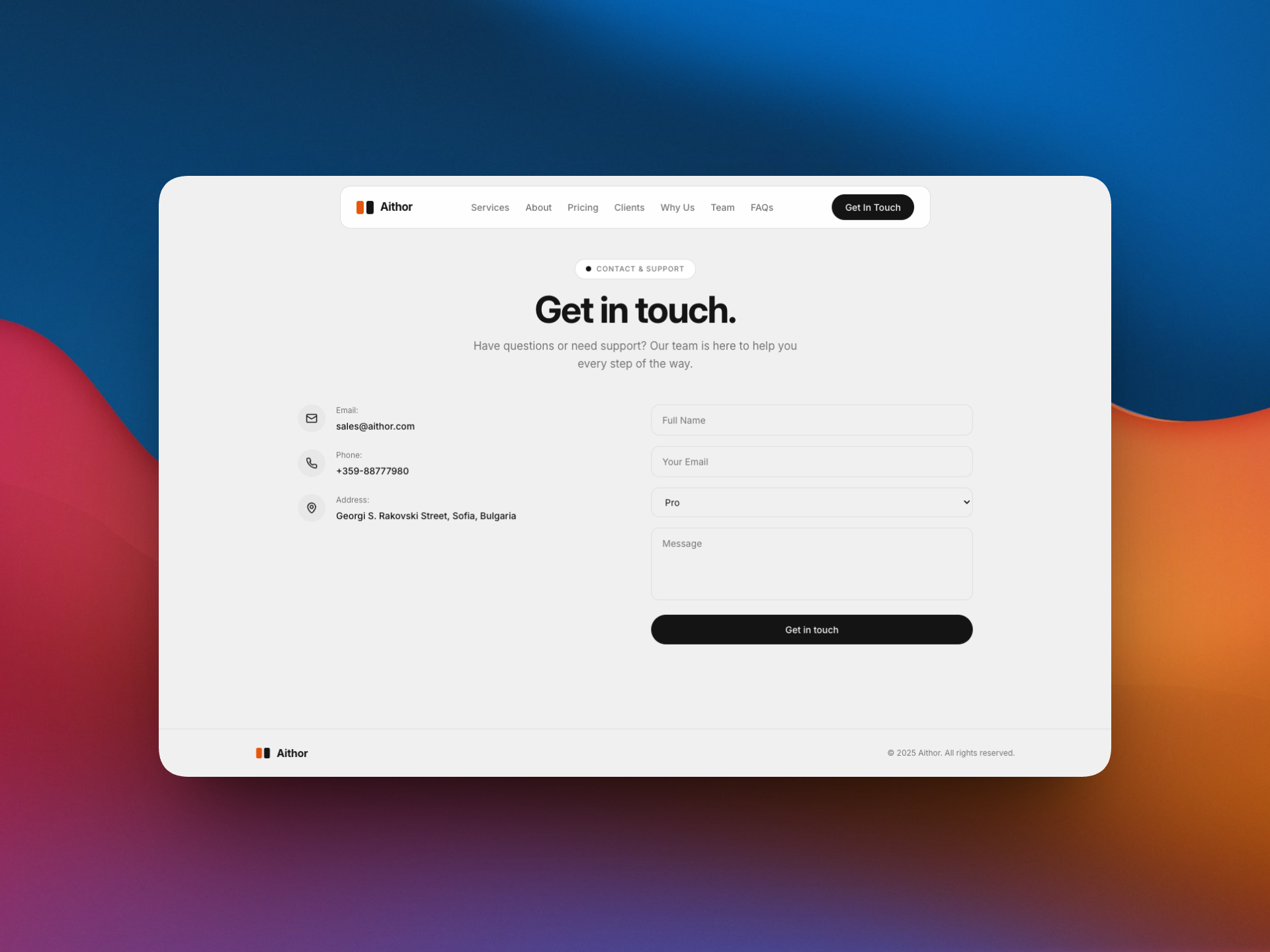 - Multipage Layout – Dedicated pages for product, features, and company.